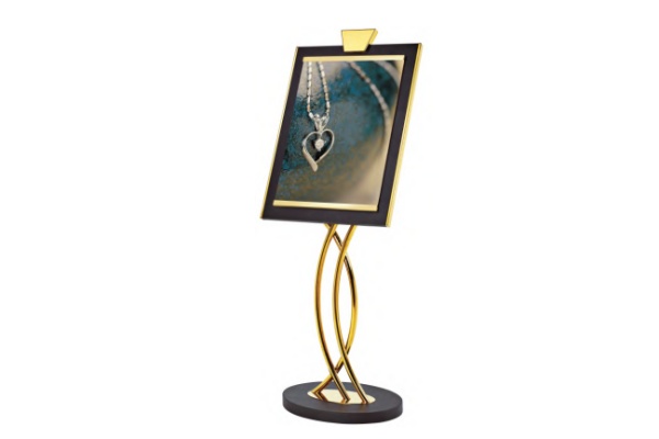 Ornate Design Elements: Decorative details (like the framed edge and structured stand) add a touch of opulence, aligning with luxury branding and interior styles.